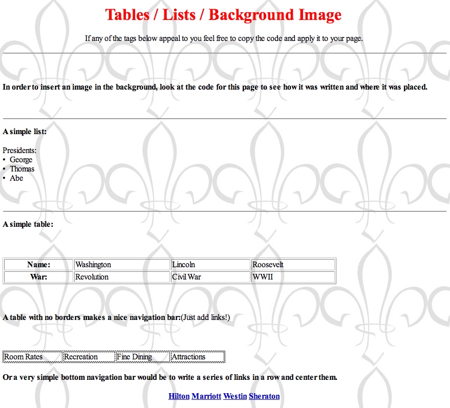 Tables & Nav Bars, Lists, Background Images: Model & Code. Download Image (click here) (.jpg)