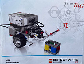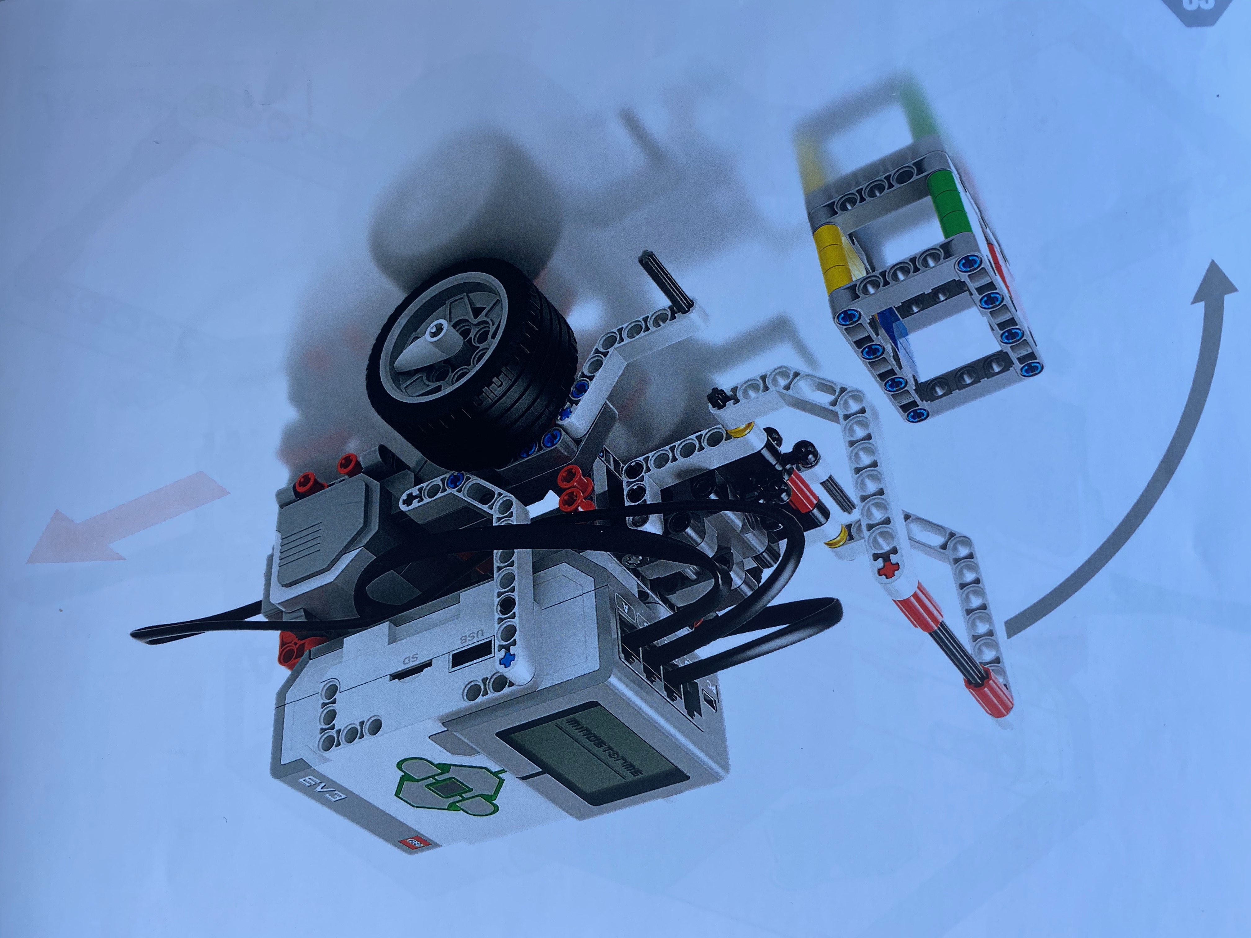 The EV3’s front arm lift closed down over the cube and then dragged it backwards for a few seconds.