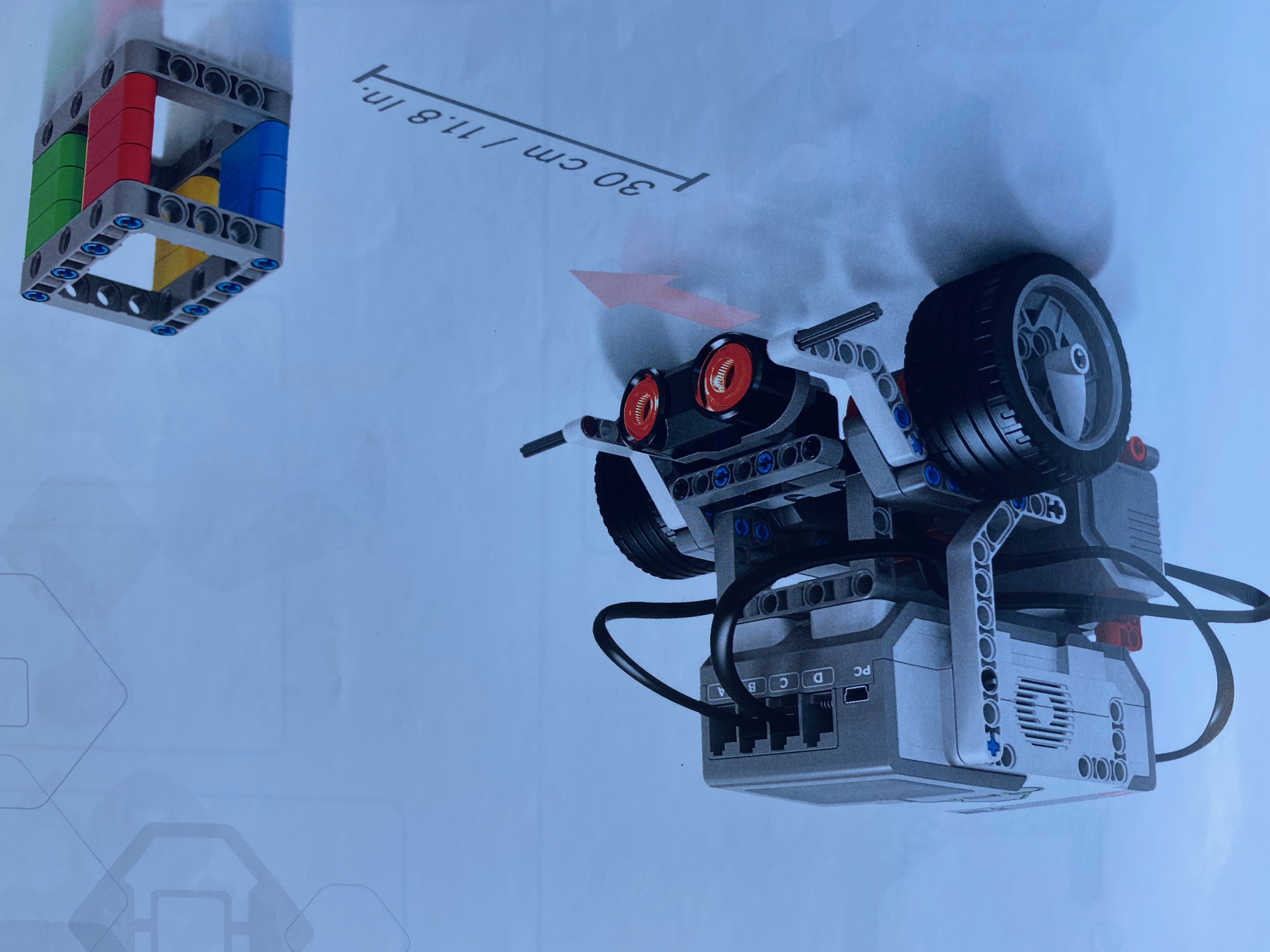 The EV3 moved forward and stopped when its ultrasonic sensor came within 30 cm. of the cube.