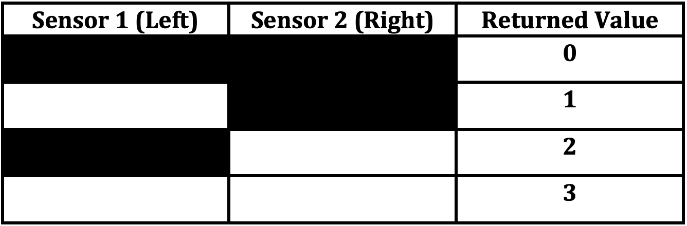 Here is a different way to program the Line Follower Sensor. Instead of entering "black" or "white," enter numbers (values) instead.  Below is a Color Chart that states a number (value) that represents each color scenario.