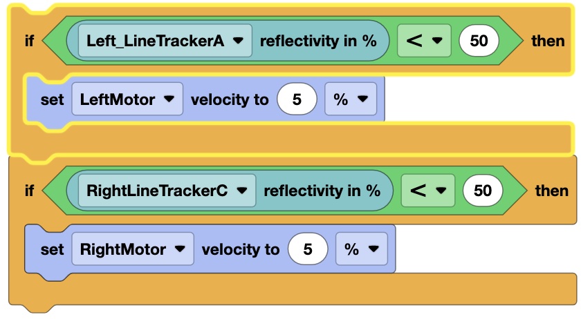 Line Sensor: IF/Then Statement to allow the robot to follow a white line.
