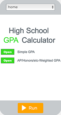 ![]() The High School GPA Calculator Select whether your GPA is weighted or standard and the App will provide your GPA. Click Here |